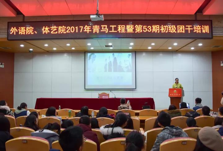 为提高团学干部的思想政治素质和工作能力,培养团学干部“刻苦学习、勤奋工作、勇于创新、自觉奉献”精神,增强团学组织的凝聚力,充分发挥团学干部模范带头作用,结合bevictor伟德官网共青团工作的实际情况,体育艺术学院、外国语学院团委学生会于2017年12月9日在八教学海厅、九教北401教室召开第53期初级团干培训。主持人为体育艺术学院艺术团主持队员周东铉。参与嘉宾分别是体育艺术学院团委书记陈音竹、外国语学院团委书记陈熙,讲座对象是院团学干部及各班长团支书。