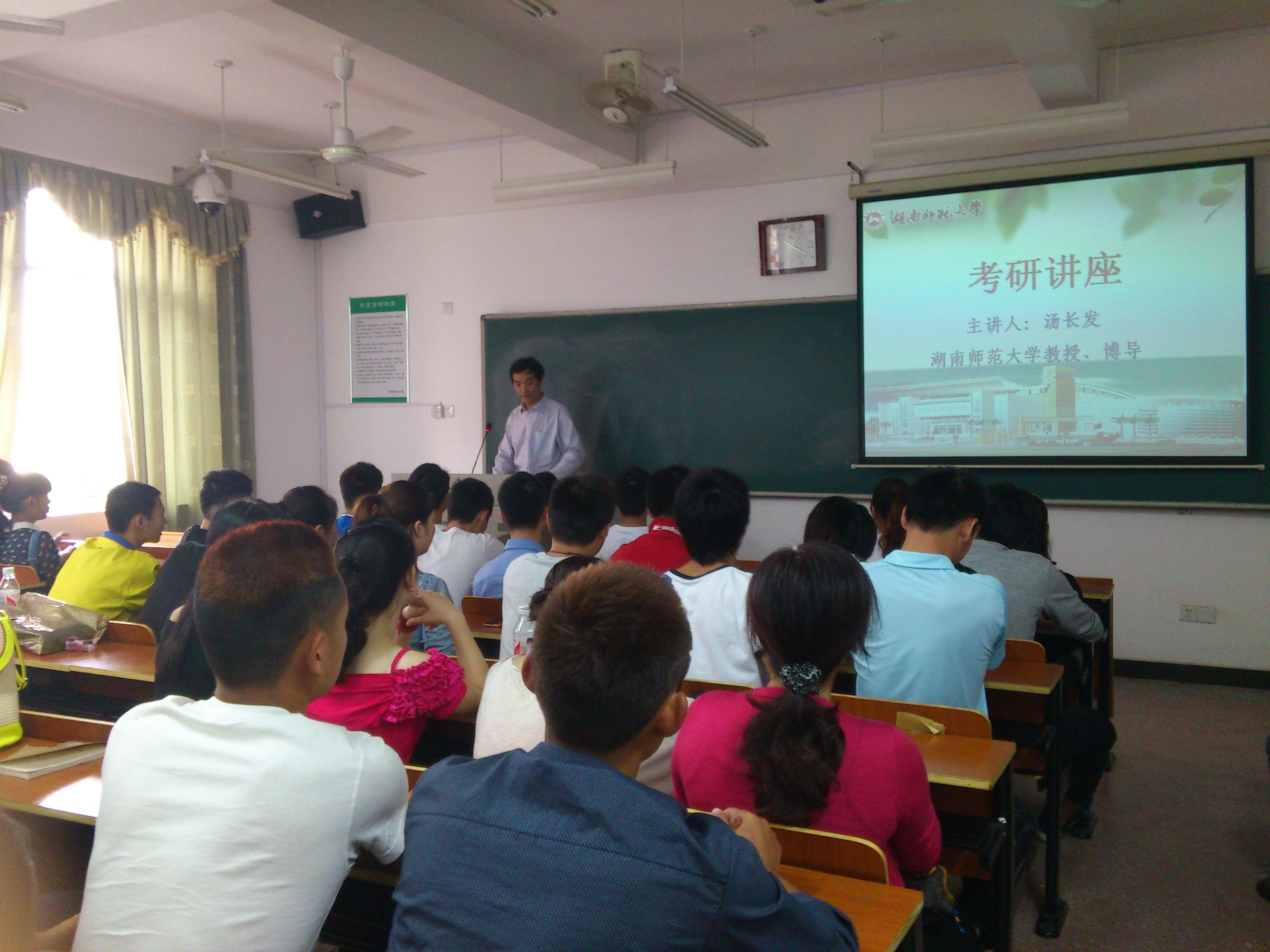 近几年来bevictor伟德官网研究生入学考试一直保持着较高的录取率,在bevictor伟德官网09级学生的殷切期待下,湖南师范大学bevictor伟德官网副院长,湖南省自然科学基金课题,教育厅课题,省教育规划课题评审专家;湖南省生理科学常务理事,湖南省体育科学学会理事,湖南省心理学会理事汤长发教授来bevictor伟德官网进行了一场别开新面的考研讲座,讲座由肖夕君老师主持,李骅院长,曹庆荣副院长、谭金飞等老师出席了本次讲座,原体艺学院院长李泽群教授给予了本次讲座很大的支持。