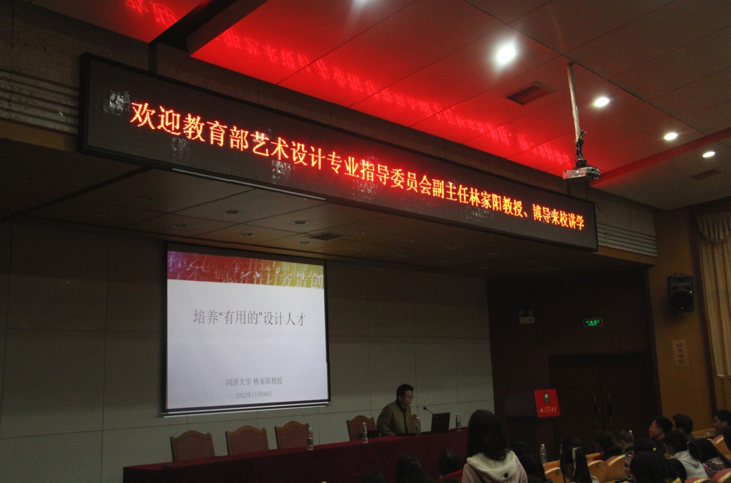 下午,刘丹教授主持林家阳教授的学术报告—“如何成为优秀的艺术设计人才”,艺术设计系全体在校教师、兄弟院校的部分同仁参加了报告会。作为教育部艺术设计教学指导委员会副主任、2008北京奥运会徽国际评委、同济大学设计研究中心主任,林教授一直密切关注着中国设计教育事业的发展,关注着中国设计人才的培养。