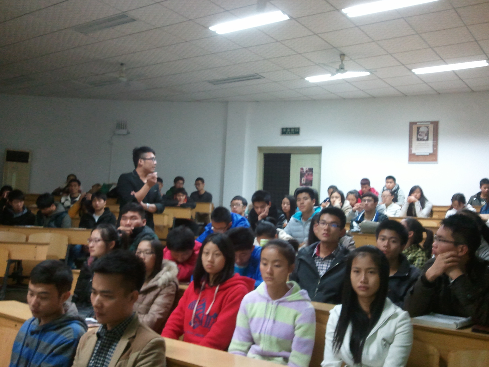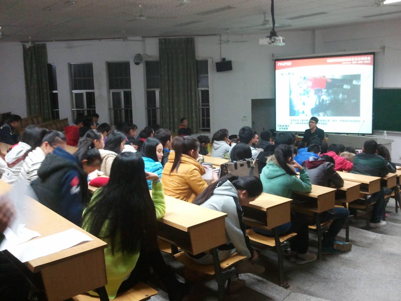 2013年11月26日19:00 ,社会体育指导与管理系联合院学生会实践部特邀诺韦耐德(香港)健身教练培训总负责人,CCDM职业规划师认证导师,湖南省健身健美协会委员,健身教练国家职业资格认证咨询顾问侯乐先生来我校进行了主题为《贵族高薪行业之健身教练》的讲座。讲座在七教新T1教室进行,参加的学生有表演系和社会体育指导与管理系的学生及学校健身爱好者,侯乐先生主要从以下三个方面进行了论述:2014年就业前景分析;体育专业就业方向解析;健身行业就业前景展望。