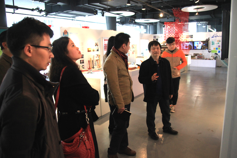 教师们一行还观摩了湖南省工业设计创新平台先进的工作室设计服务模式,并深入考察了湖南大学设计艺术学院产品设计专业教学培养方案。何教授以湖南大学设计艺术学院为例,对工作室制度进行了详细介绍。学生来源主要包括本科生、研究生、访问学者和留学生和外教;学生分成若干小组,其课程内容以课题(项目)为主,定期集中汇报、研讨;学生通过课题项目深入学习专业知识,将理论与实践有效结合,充分体现了产学研和科技创新的作用。