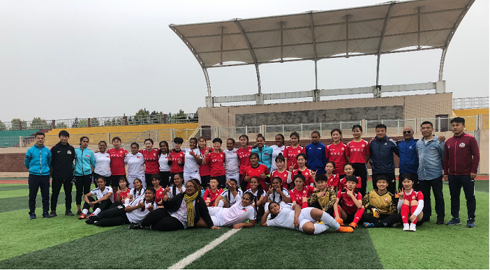 为更好的实现习近平主席“一带一路“的政策,五一假期我校高水平女子足球队应邀与萨摩亚国家女子足球队在岳阳进行了两场足球交流赛。赛场上,本着“友谊第一,比赛第二”的宗旨,双方队员以精湛的球技、高昂的斗志,展现出了永不放弃、勇于拼搏、团结协作的精神风貌。最终,经过激烈的角逐,两场球均以我校女足队点球获胜。赛后,两队队员一起进行了友好的沟通与交流。