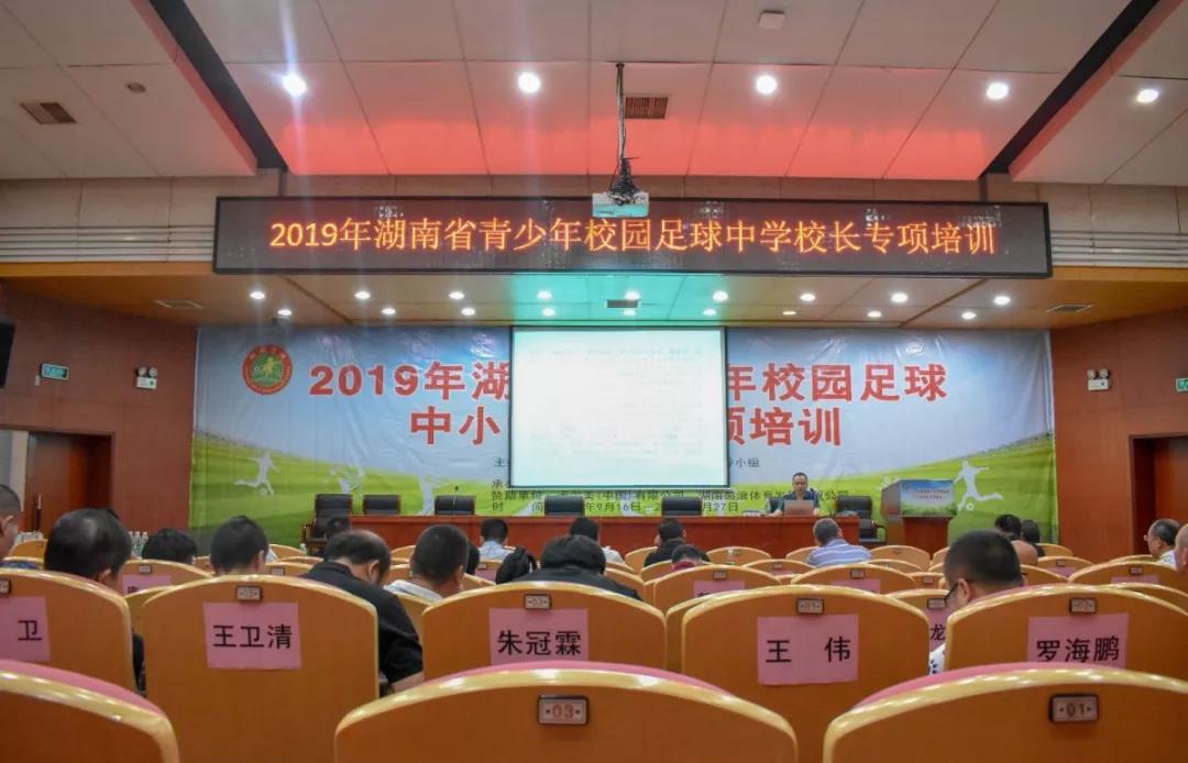 2019年9月19日上午,湖南省青少年校园足球工作领导小组办公室王冬冬副教授于八教学海厅做主题为“校园足球建设标准和考核办法”的课程培训。参加课程的是湖南省青少年校园足球特色学校全体中学校长。