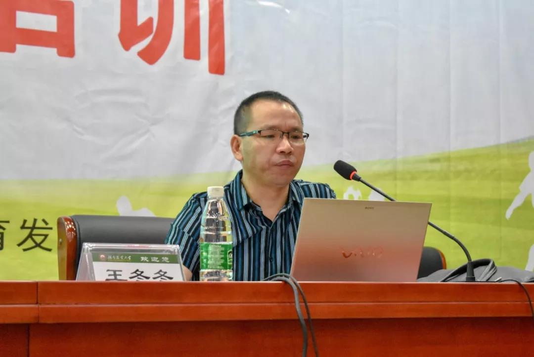 首先,王冬冬副教授就开展校园足球时代背景做了简单介绍,强调发展校园足球将作为一件重大而紧迫的战略任务,从开展校园足球的时代语境、校园足球政策的工作目标、什么是校园足球与校园足球特色学校展开会议。他表示校园足球是泛指校园范围内一切与足球有关的活动。校园足球活动,旨在让学生获取认知、提高身体素质、增强人际交往能力、提升团队合作观念。王教授指出要发展好校园足球运动,领导需高度重视,部门通力协作并及时立规建制、出台政策措施,在发展中突出育人为本,明确发展理念;创建特校基地,强调示范引领,全面开展培训,提升师资力量。足球专项的发展,专项资金投入、硬件设施建设、师资待遇的落实,缺一不可。