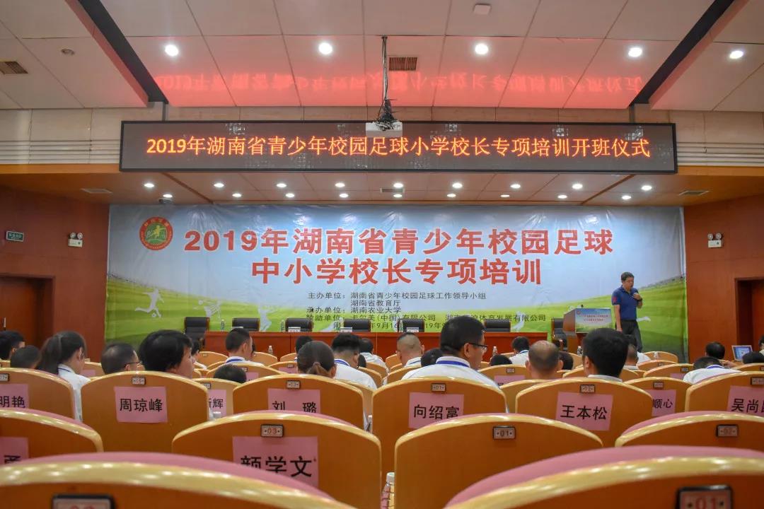2019年9月24日上午9时,由湖南省青少年校园足球培训工作领导小组、湖南省教育厅主办,bevictor伟德官网承办的2019年湖南省青少年校园足球小学校长专项培训班开班仪式在八教学海厅举行,湖南省教育厅体卫艺处正处级调研员金彪、湖南财经学院bevictor伟德官网院长刘伟、bevictor伟德官网体育艺术学院院长曹庆荣、bevictor伟德官网体育艺术学院党委书记王山群、体育艺术学院组织员罗喜安,及省教育厅体卫艺处各领导、湖南省小学校园足球特色学校全体校长等出席本次会议。此次会议由罗喜安主持。