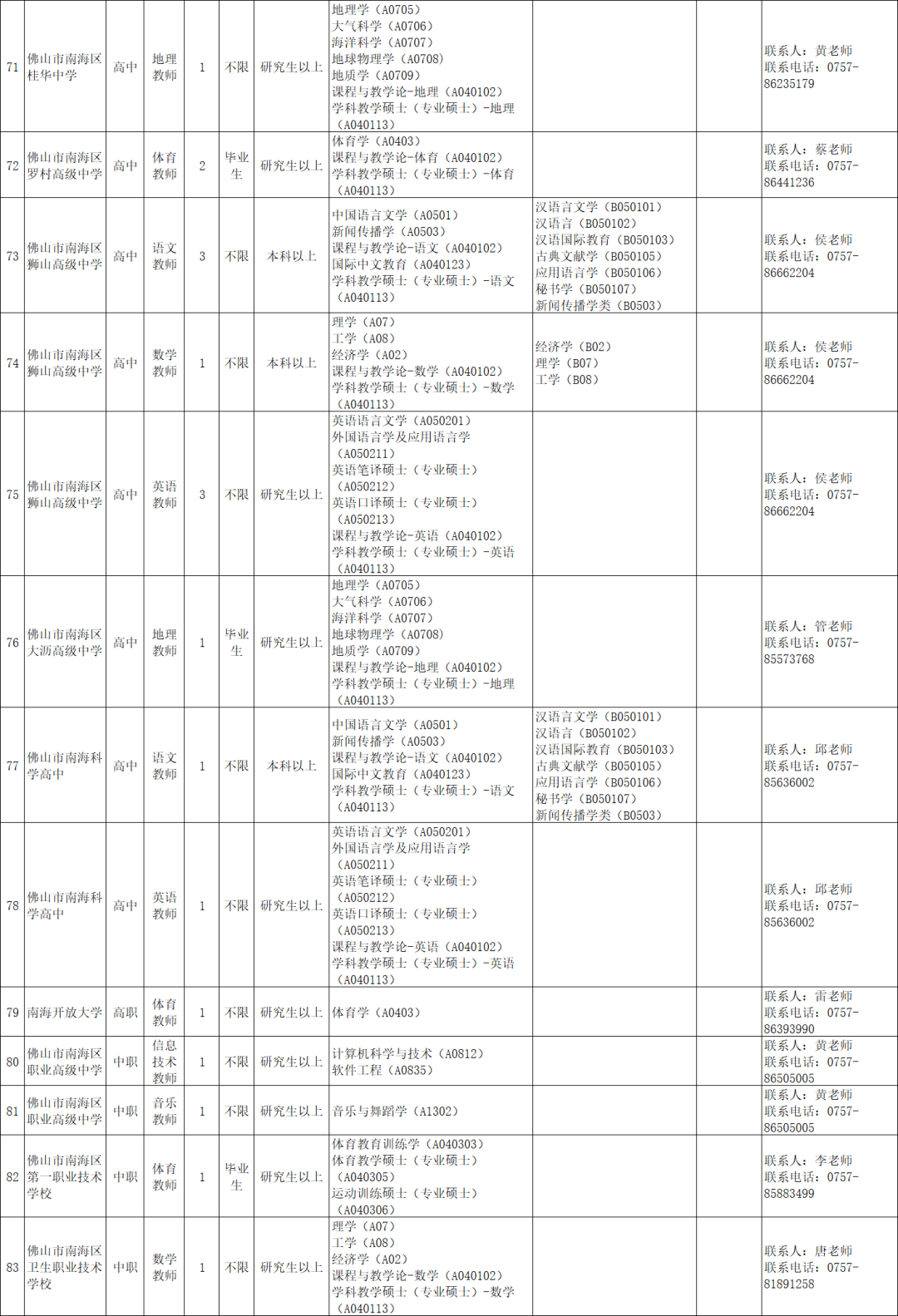 本场招聘编制教师172名,详见《广东省佛山市南海区教育系统2026-2027学年面向社会公开招聘教师岗位表》(附件1)。
