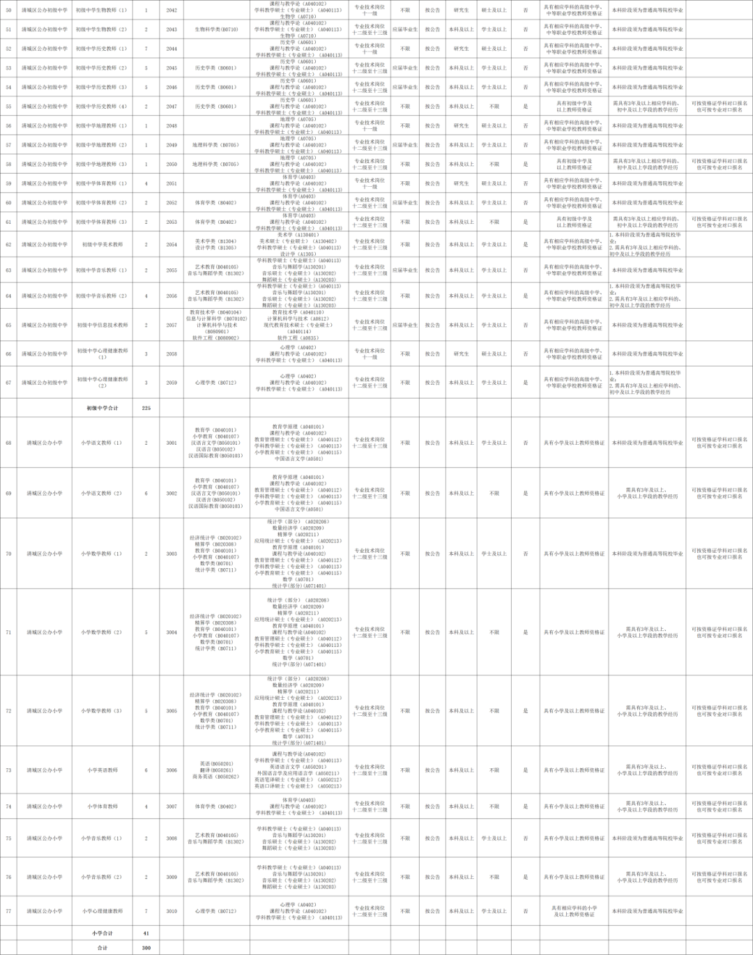 公开招聘事业编制中小学教师共300名,具体详见岗位表(附件1)。